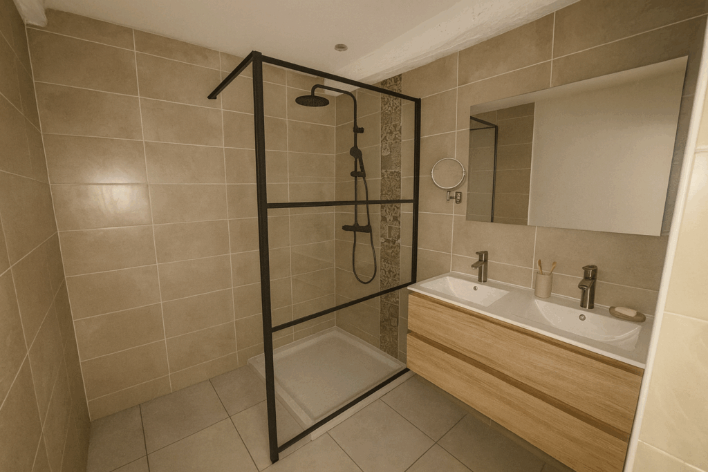 • Salle d’eau moderne avec douche bac extra plat