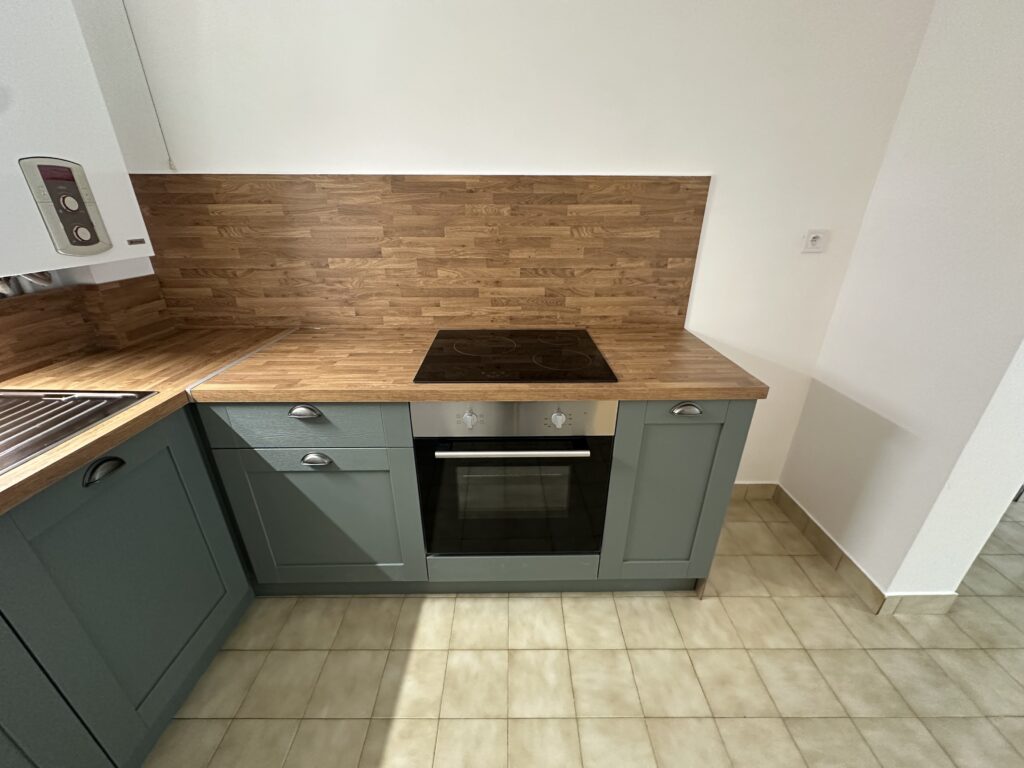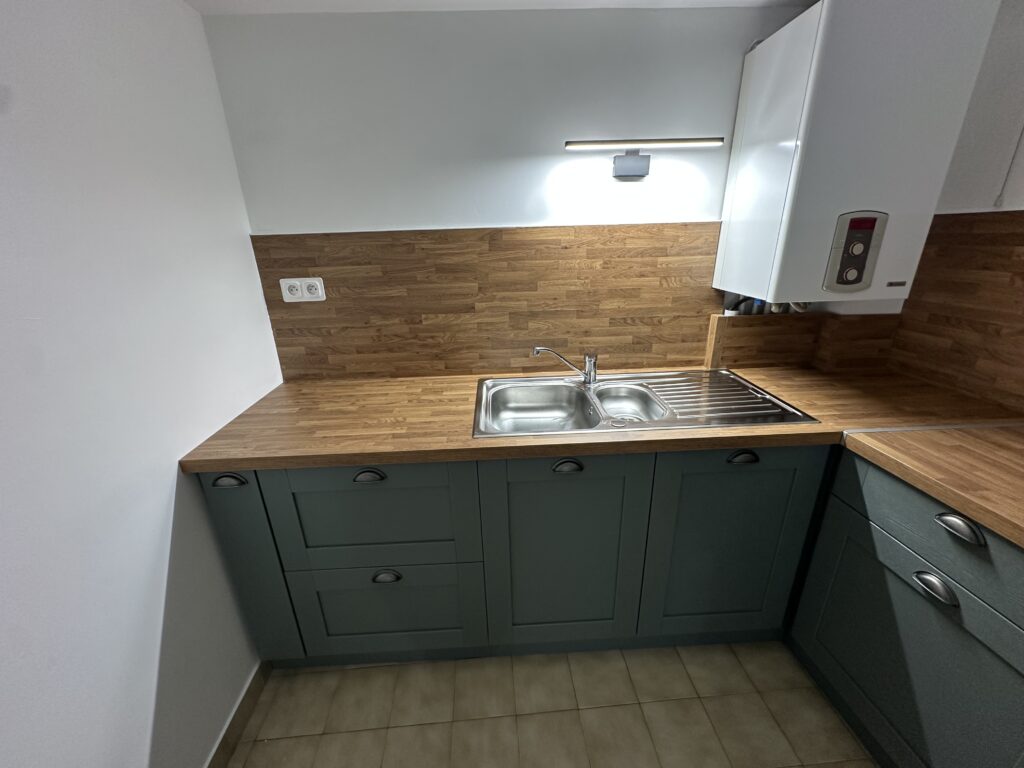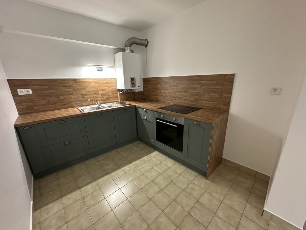 - Une cuisine partiellement équipée (meubles + plan de travail, avec équipements visibles sur place)
